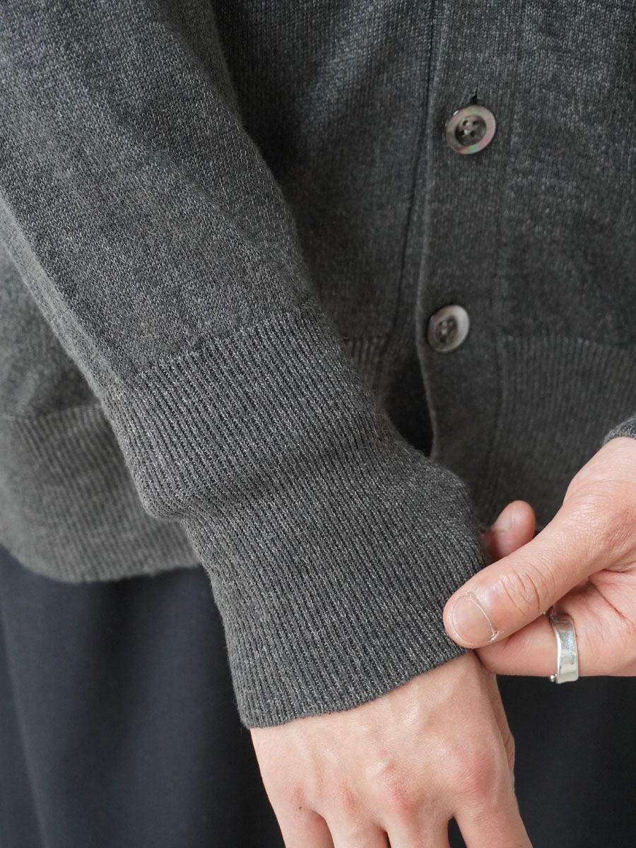 LINEN / SILK PLAIN STITCH V NECK L/S[CHARCOAL]