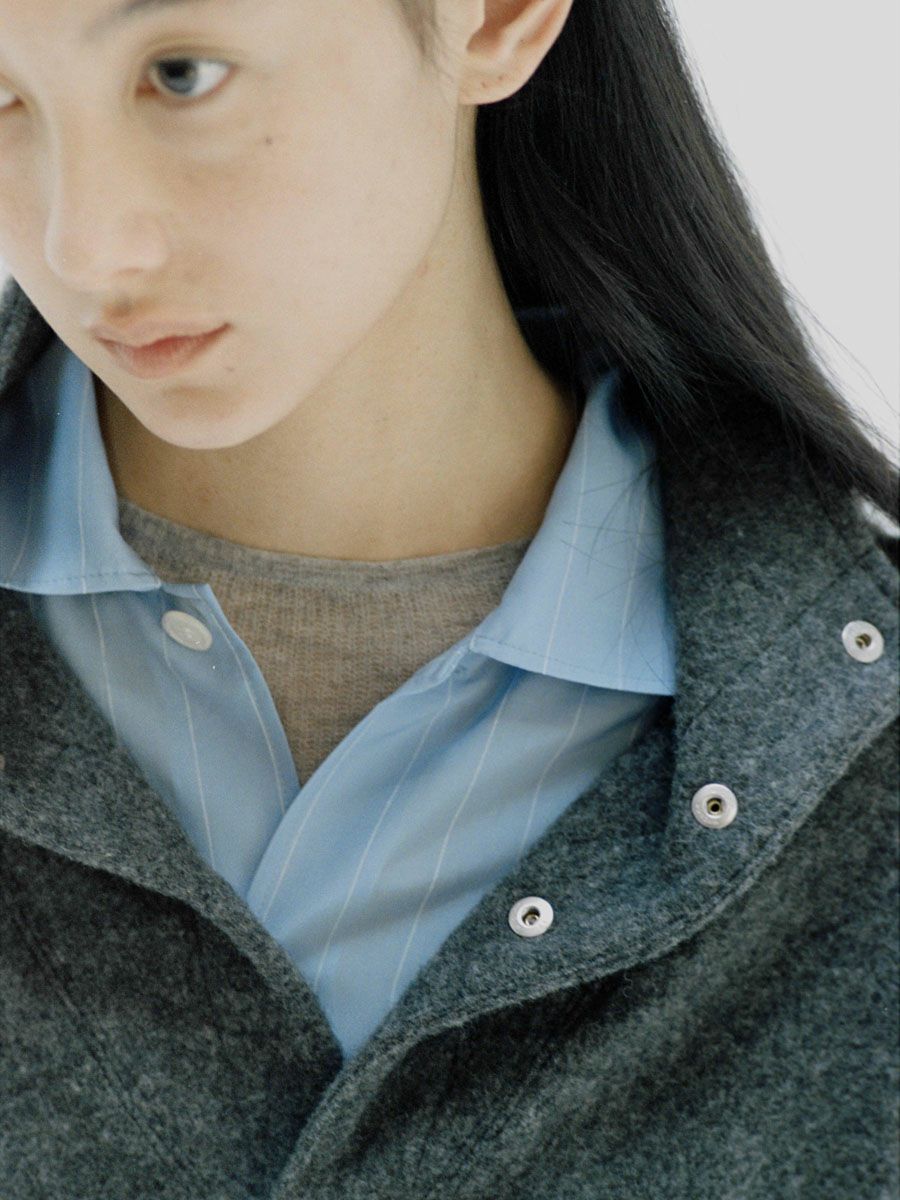 PINSTRIPED SHEER PAJAMA SHIRT[D.GRAY]